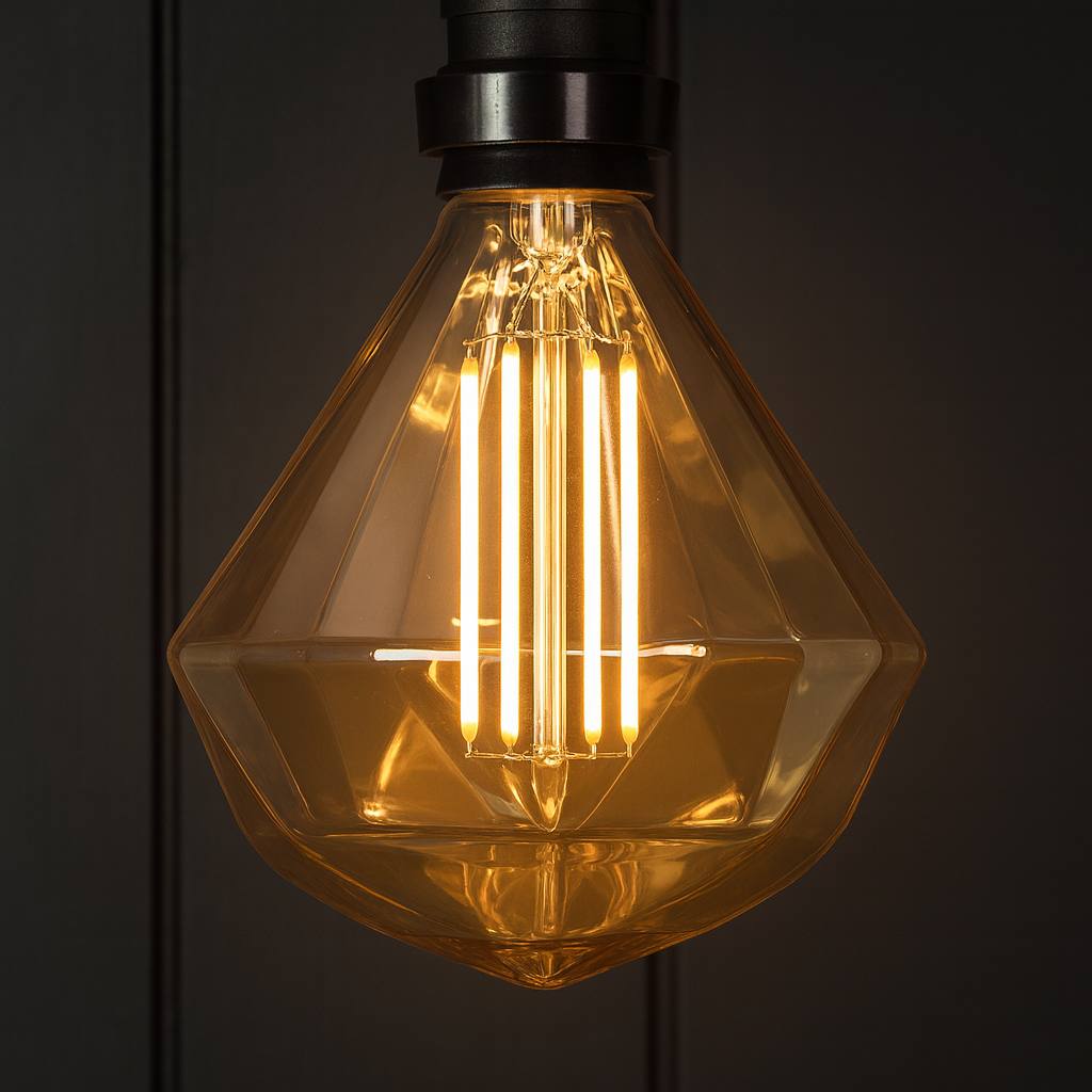 لامپ فیلامنتى با ظاهرى بسيار زيباو خاص براى استفاده در كافه ورستوران ها و اماكن لوكس مجلسى استفاده ميشود .شيشه اين محصول نيمه دودى ميباشد كه به زيبايى اين محصول مى افزايد