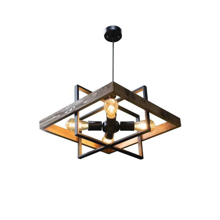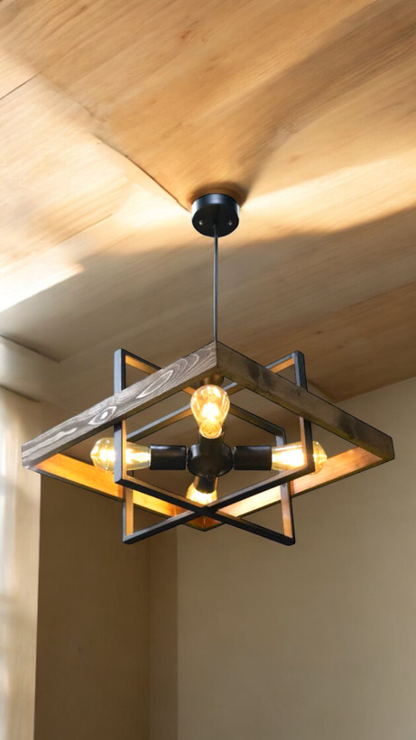 لوستر و آویز چهار شعله چوب و فلز مدل کوروش