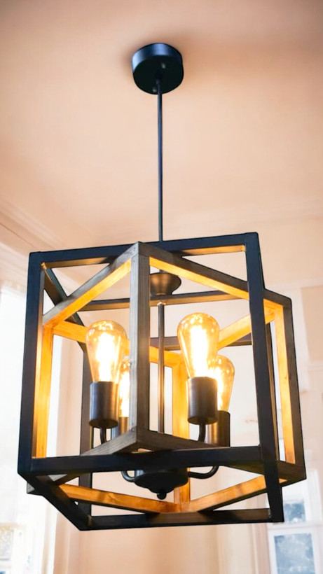 لوستر و آویز چهار شعله چوب و فلز مدل مکعب دوبل