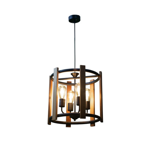 لوستر و آویز چهار شعله چوب و فلز مدل رینگی