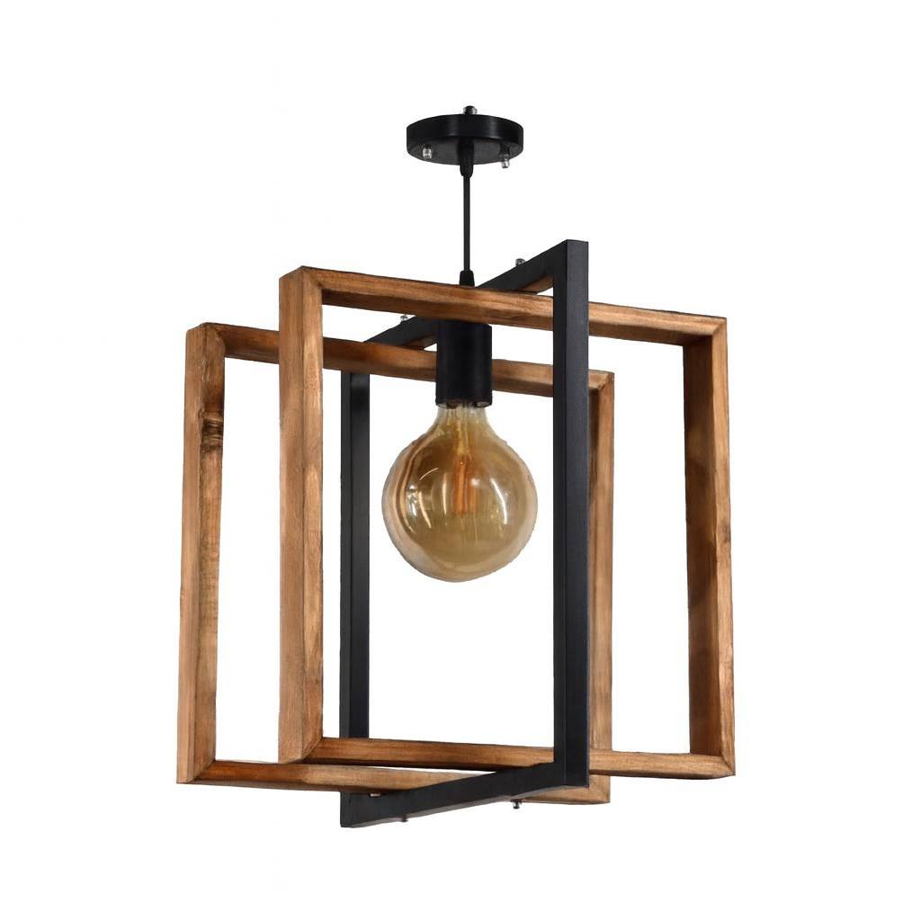 لوستر و آویز چهارشعله چوب و فلز مدل قاب